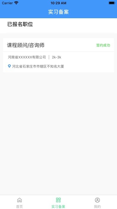 1、打开实习备案app,点击下方的“实习备案”,可看到学校发布的实习计划。点击“前往报名”