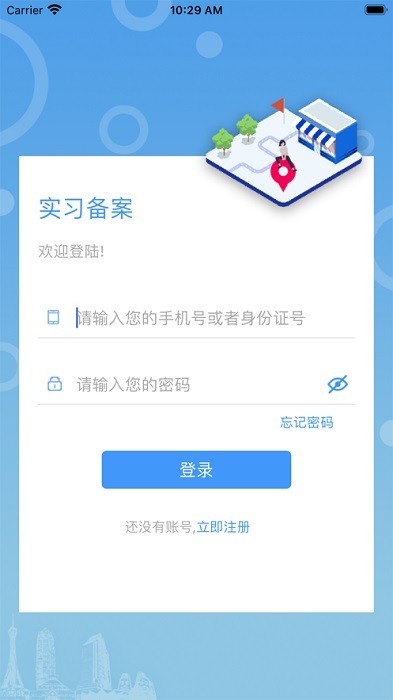1.打开实习备案APP,登录之后点击底部导航栏的[实习备案]功能,