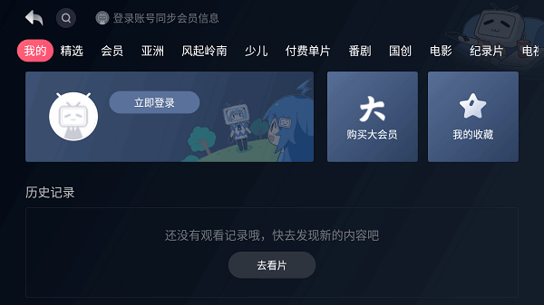 5、收藏、观看历史等,同步手机端账号。