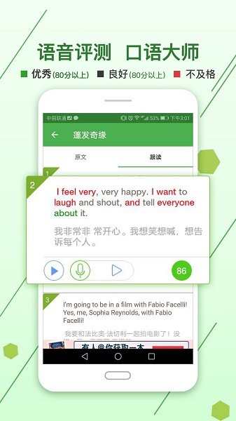 3.不仅可以阅读还可以练习口语,软件内含语音评价,让用户成为口语大师。