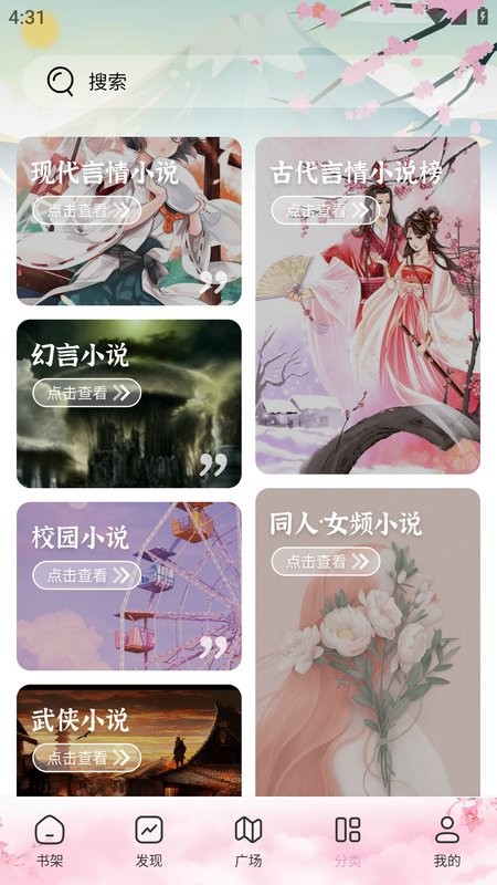1、各种类型的小说都可以在平台上找到,校园、玄幻、仙侠、言情等等,一网打尽。