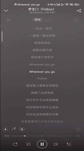 9、播放任意一首歌曲,就可以在设置的位置看到状态栏歌词显示了。