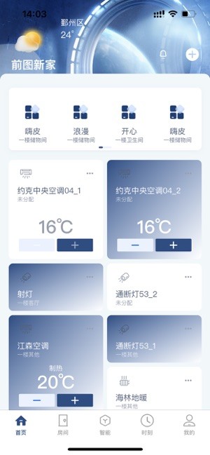 1、用户可以通过前图智能对家中的各种电器设备进行实时控制,包括灯光开关、温度调节、窗帘控制等。
