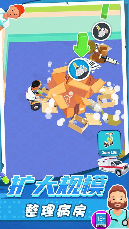 4、有很多的道具可以使用,完成各种手术任务,解锁更多病房,扩大规模。
