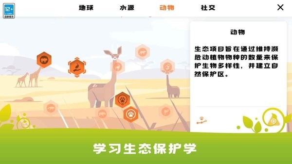 这款游戏不仅适合儿童,也适合成人,强调全年龄参与。玩家可以了解不同区域的环境问题及其原因,并学习如何预防和解决这些问题。游戏中还能培养义工队伍,与偷猎者、走私者等对抗,保护生态环境。此外,游戏还注重生态模拟,玩家需要开发和实施各种环保项目,维持生态平衡。