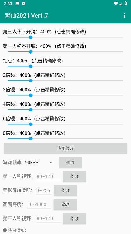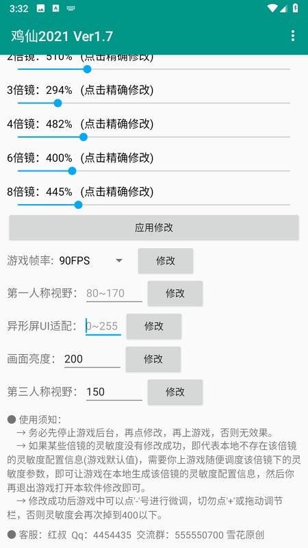 2、如果某些倍镜的灵敏度没有修改成功,即代表本地不存在该倍镜的灵敏度配置信息(游戏默认值),需要你上游戏随便调度该倍镜下的灵敏度参数,即可让游戏在本地生成该倍镜的灵敏度配置信息,然后你再退出游戏打开本软件修改即可。