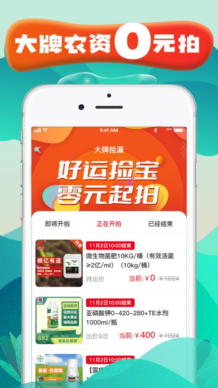 种地保农资app软件最新版汇集了正品农资资源,各种农药、种子以及肥料等一应俱全,每天都有超多农资等你来拍,有非常详细的时间预告,一件起批,门槛超低,超多大牌等你来捡漏,还有专属客服在线为你答疑解惑。