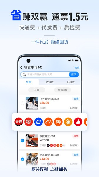 铺货快:多平台一键铺货,同步订单,大幅提升运营效率;