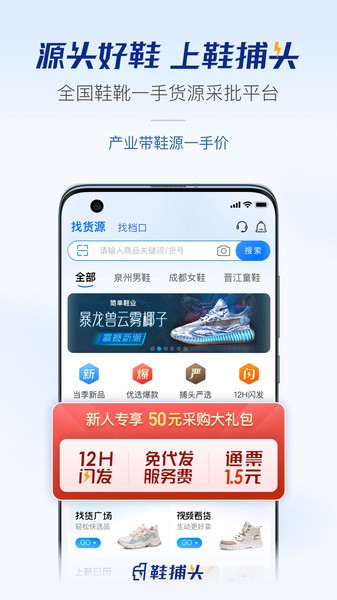 鞋捕头平台官方APP,来自全国鞋靴产业带5000+供应商一手货源,一站满足实体、电商、直播、个人多种分销需求,1件无忧代发,7天无忧售后。