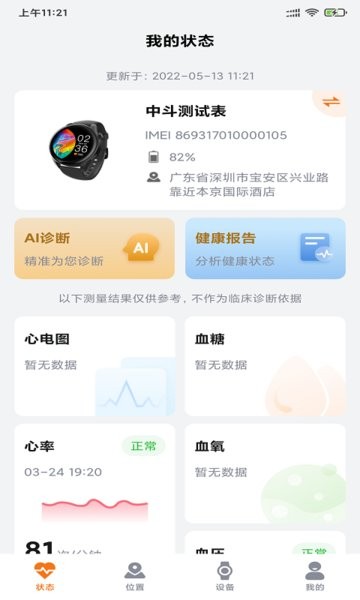 一款健康管理辅助应用,可以让APP展示手表的心率、血氧、睡眠、定位、运动等各种健康数据,方便用户查看跟踪自己的健康状况,享受健康生活