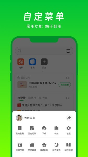 vv浏览器手机版是提供手机浏览访问搜索的应用工具,界面十分简单,一键搜索即达,极速浏览,轻松访问,还支持自定义设置,添加标签,私密保护,打造绿色搜索环境,内置大量资源内容轻松找到,资讯、小说、热点热搜、视频、文件一网打尽!