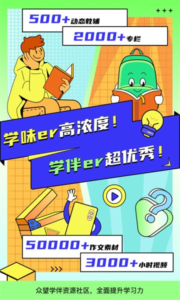 500+动态教辅,2000+专栏,3000+小时视频,50000+作文素材,