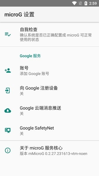 microg设置安装apk最新版是类似于谷歌服务框架的应用,体积比较巧,界面十分简单,还拥有强大功能,可以访问所有谷歌的服务,支持安装游戏的插件,更好延长电池续航时间,安全可靠,运行稳定,操作简单,是好用的工具神器,满足用户需求!