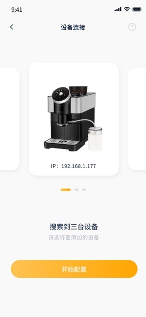 在软件中就可以与对应的咖啡机设备进行连接,以便你可以选择咖啡机制作饮品;
