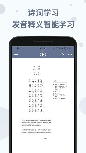 -- 诗词释义,每一首古诗词都有释义,助力学生把握意思;