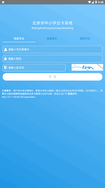 第二步 登录“北京市中小学学生卡卡管系统APP”