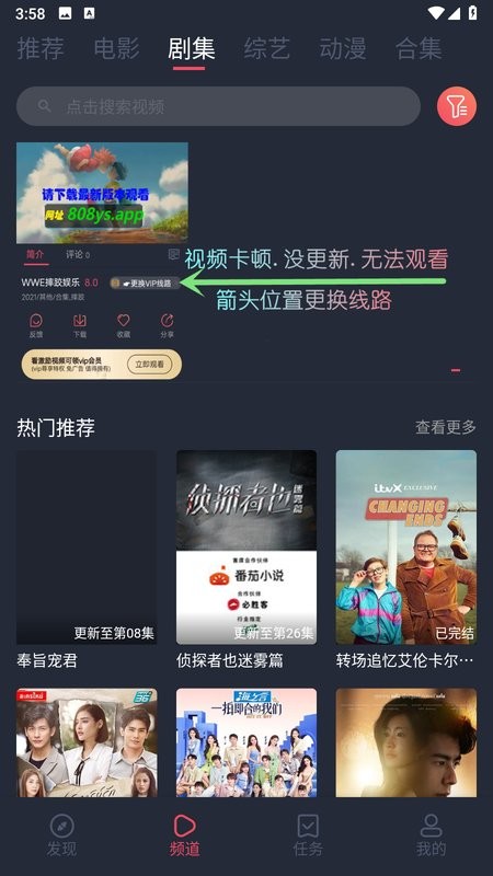 3、视频播放时支持离线下载和投屏播放,可以选择不同线路来观看