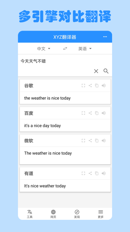 xyz翻译器最新版是提供多语言互译、多引擎对比翻译的强大工具,界面设计十分简单,操作便捷,还用丰富的外语学习资源,各种内容在线浏览学习掌握,拓展大家的知识,解决语言不同的问题,了解更多的英语知识,好用又实用!