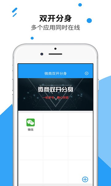 全球首创应用多开分身功能,更稳定的微信多开宝,完美支持微信多开、qq多开、派派多开、淘宝多开、闲鱼多开、游戏多开等绝大多数应用无限多开,依托独立内存管理机制,手机无限多开不卡顿。