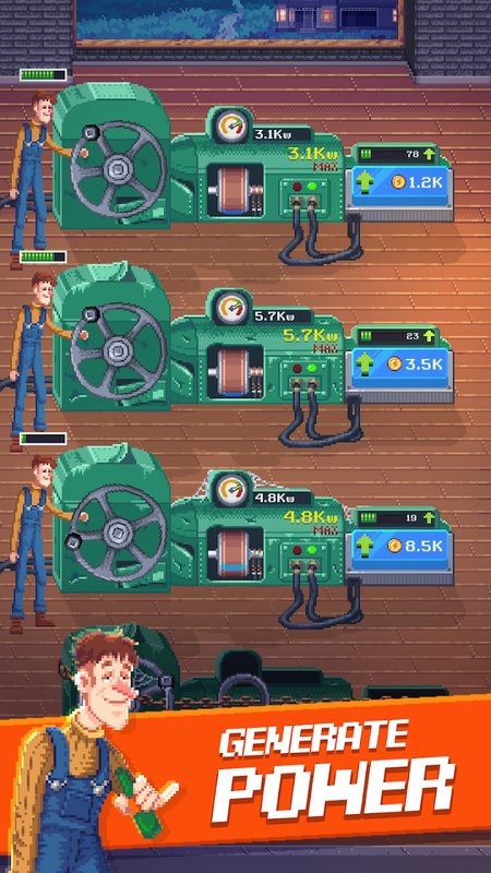 电力公司最新版即Power Inc,是模拟发电厂的经营游戏,采用像素风格画面绘制呈现,打造不同的发电厂环境,带来丰富的玩法任务,通过旋转涡轮机来发电,发明新技术,研究更多的能源,建造更多房屋,发展城市,赚更多钱,操作简单易上手!
