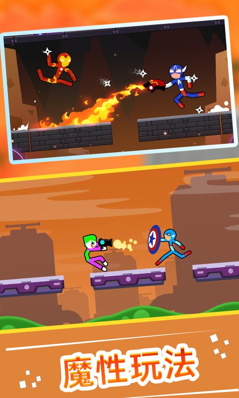 1.让玩家在享受精彩格斗大作战的同时体验一种全新的游戏挑战,每个火柴人角色都非常有趣。
