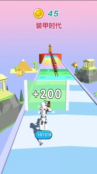 从原始时代到现代文明,乃至未来的机甲时代,《未来战士进化》是一款以人类进化为主题的休闲跑酷小游戏。控制人物移动,在赛道上通过增加对应年限使人类从石器时代不断的进化到到机甲时代,最后通过进化的时代程度而获得不同的奖励。注意可以通过撞击赛道上的人物获得额外的的金币奖励!