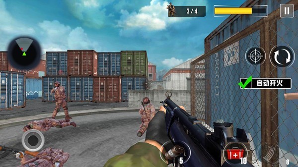 一款3D的超刺激枪战游戏,游戏内集合了上千个关卡,消灭敌人、解救人质、破坏建筑,每个关卡都有不同的任务!完成任务后会获得游戏奖励,你可以用来兑换新的武器,购买手雷或医疗包。关卡中手雷可以帮您更有效的清除敌人!