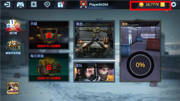 1、仓库中的所有枪械你都是可以自己选择的,合适的武器非常重要,任务还是很多的,一旦完成你就能获得很多武器,惊喜奖励等你来拿。