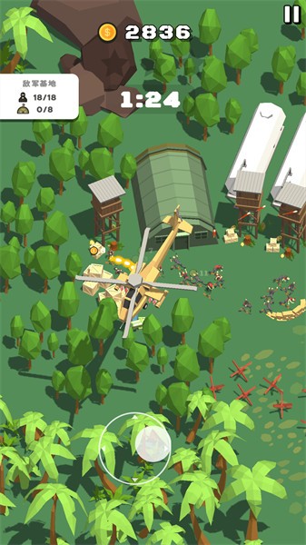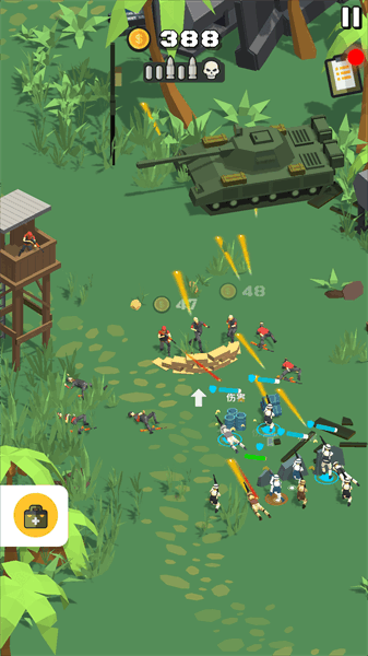 铁血士兵对决,卡通画风的战争策略游戏。玩家指挥召集各个士兵加入兵营,伐木采集建造营地,布置炮塔阵容,炮轰敌军,更大地图扫荡,完成你的战争。