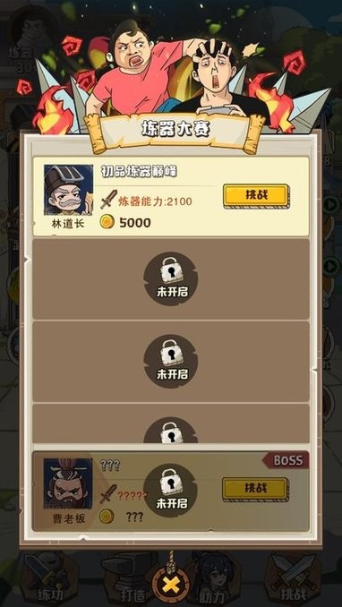 老铁来一锤手游是模拟经营铁匠铺的手机游戏,画面刻画高清卡通,玩法简单,主要围绕打铁主题展开,不断学习新的铁匠技艺,选择合适的材料和配方,制作高质量的铁制工具,应对市场变化,参与评比,击败对手,完成任务,获得游戏奖励!