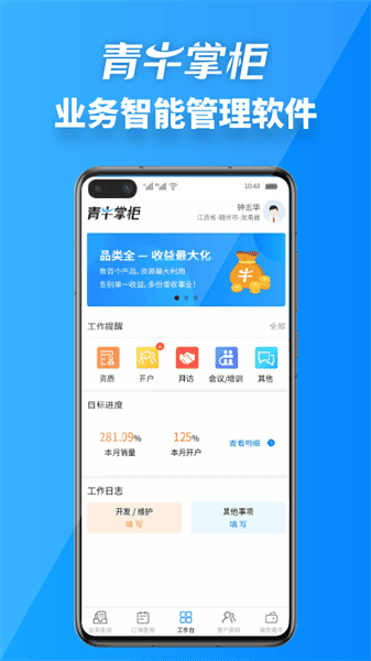 青牛掌柜app,一个专门为广大的业务员群众们打造的在线办公辅助软件,依托强大的技术为用户带去了智能便捷的办公环境,大家可以直接在软件中协商办公、在线接单、售后服务等,超级方便好用,可以极大的提高相关人员的工作效率,有需要的朋友快来下载用起来吧~