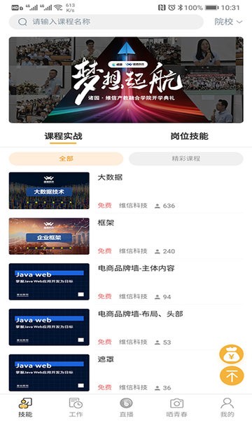 山西校企通是一款集即时通讯,直播课程,朋友圈,招聘,应聘职位的解决大学生就业问题,同时学生可以通过名师视频增加技能,发布视频简历的APP。