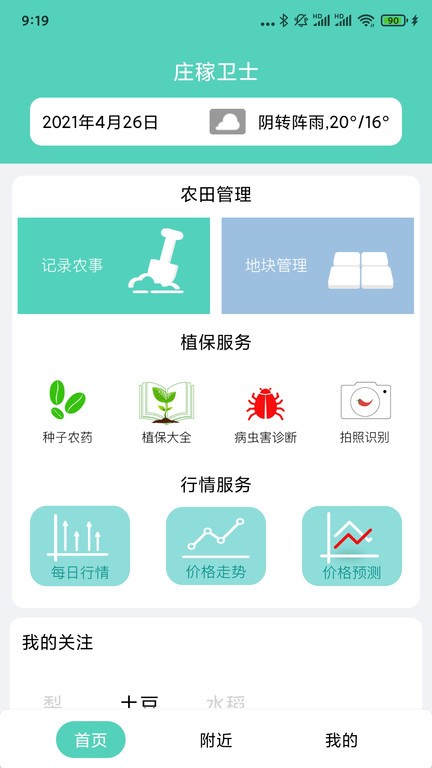 庄稼卫士手机版是一款以AI+植保服务的农田管理工具,通过人工智能算法模型、知识图谱、拍照识别病虫害等先进的人工智能技术和农业大数据技术为种植业从业者提供农事记录、地块管理、拍照识别病虫害、AI智能诊断病虫害、病虫害预警、专家在线咨询、农产品追溯服务、农产品价格行情分析、农场宣传展示等综合服务的农田管理和保值服务工具。