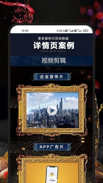 3.在这个软件当中用户可以在上面去设计自己的公司广告宣传语,将一些业务的图片导入就能够轻松地制作出视频了。