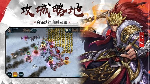 使用计谋搭配打破战役僵局,领略真实三国故事,一场战役多种计谋搭配,拓宽策略搭配自由度;合理的规划行军路线,利用天时地利妙计锦囊,既可一骑当千,更能运筹帷幄!