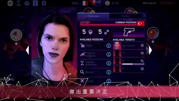 让你的特工施展身手,引诱、操纵你的目标,并让他们心甘情愿地投入你的阵营,或让他们保持中立。
