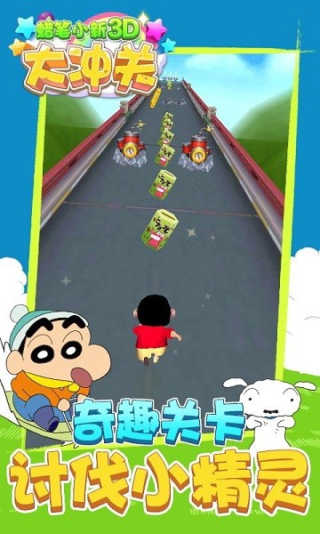蜡笔小新3d大冲关手游是非常好玩的蜡笔小新主题的一款游戏,在这里玩家们能够看到超多的蜡笔小新中的人物形象,小新、正男、阿呆、风间等等等等全都能够在这里看到,还有超好玩的跑酷游戏的玩法让玩家们在这里不断的像鼠到游戏的乐趣,超级的好玩。