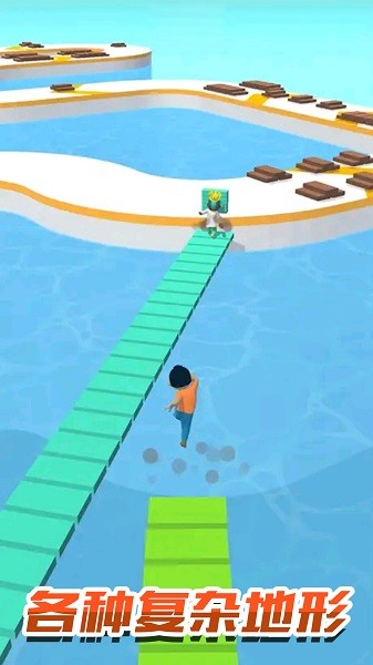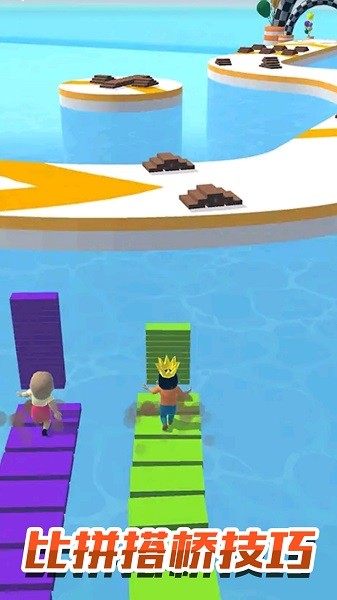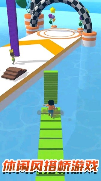 欢乐搭桥,趣味的花式跑酷手游,游戏中玩家需要和其它人在一座水乐园上跑酷竞赛,游戏中玩家可以不断的收集木板,木板可以帮助用户在关键路段搭桥抄近路,领先其它对手,游戏中巧妙的收集及使用砖块将十分关键,有需要的用户可以下载使用!