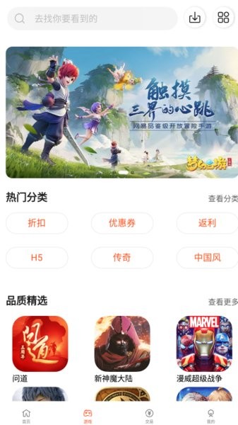 0561手游盒子app是一款好玩的h5手游盒子平台,收录了大量的游戏资源,折扣、h5、传奇、返利、中国风等类型游戏分类清晰,随你选择,品质精选,还有热门排行榜、新服游戏可以了解体验,更多惊喜福利内容不容错过,轻松畅玩挑战!