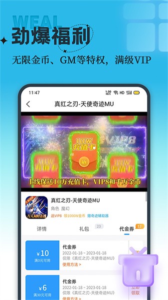 3、免费首充、手游礼包、海量礼包、代金券让你优人一级!