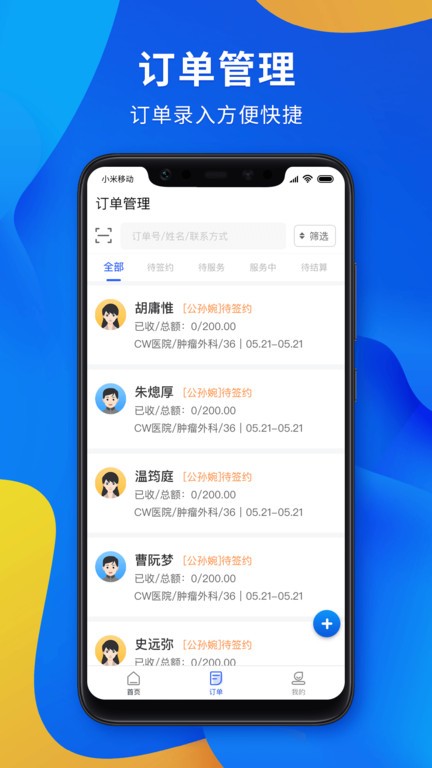 移动接单:在这里可以及时发现客户端的信医护服务订单;