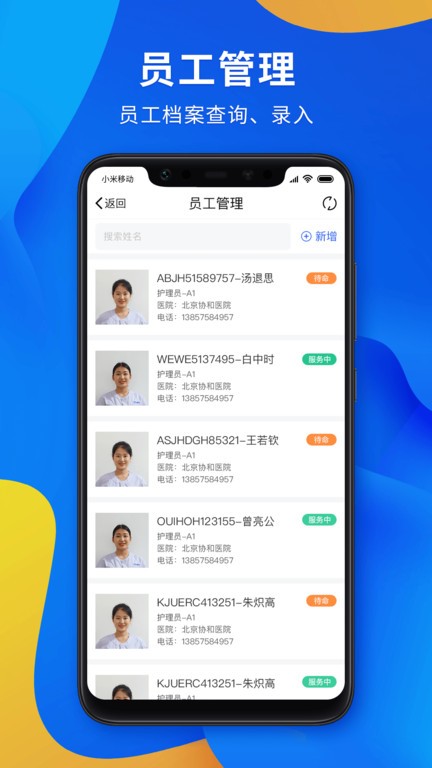 人员查询:在此管理护理员的同时可以查询任意一个人的信息、业绩;