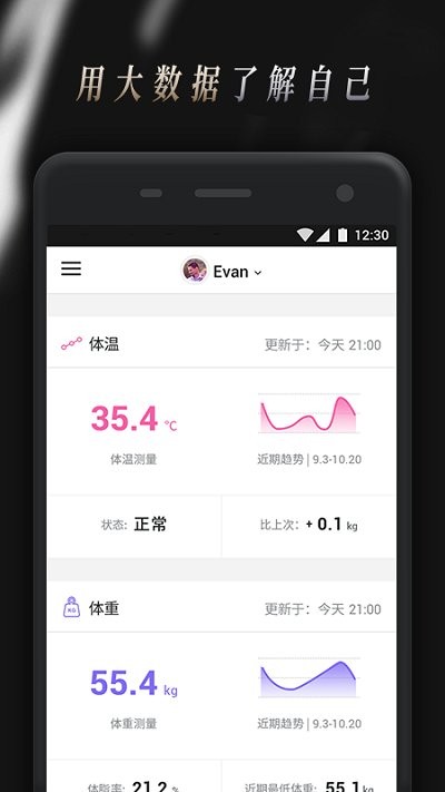 支持建立多个用户, 记录您与家庭成员们的体重、体温、运动及能量消耗等健康数据。