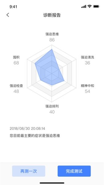 自动统计详细的历史测试记录,这样就可以在有需求的时候再次查看,分析了解个人心理状况;