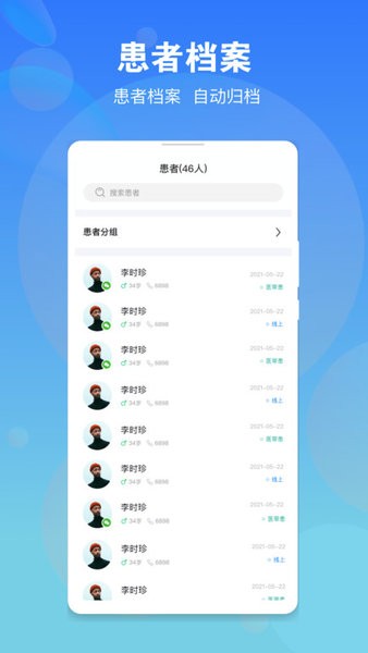 医生可以随时管理和记录用户的相关健康问题,方便更好的回答;