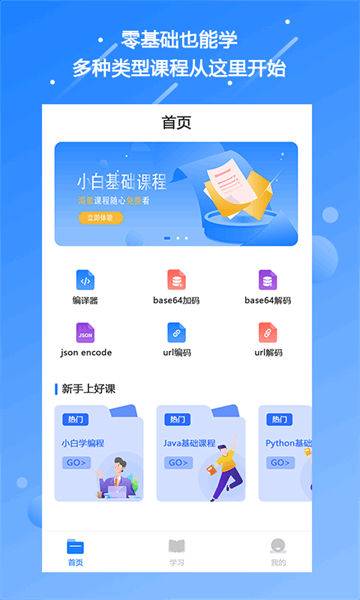 零基础也可以轻松学习代码,编程小工具,base64编码解码工具。将带领你在不经意之间体验编程奥秘,写出人生第一行代码,带你打开编程世界的大门!还支持多种语言,如javascript、typescript和less。更是可以随时编写代码,支持预览和代码提交等操作,小巧实用。