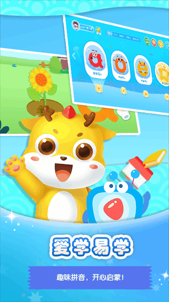 教学模块分为认知、发音、书写、拼读和声调五大模块,结合趣味性十足动画视频课堂和丰富多样的互动练习,专业的拼音拼读示范,引导宝宝掌握拼音的发音规律,充分调动听觉记忆拼音,鼓励宝宝开口动手,用宝宝喜欢的益智互动方式,进行多维拼音教学和练习。