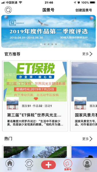 国家风景获得认证的摄影师可以创建自己的国景号,发表作品,打造个人品牌。