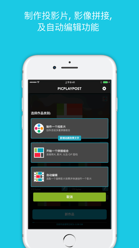 -- 自动幻灯片创建器,您可以选择媒体,PicPlayPost 将为您创建项目