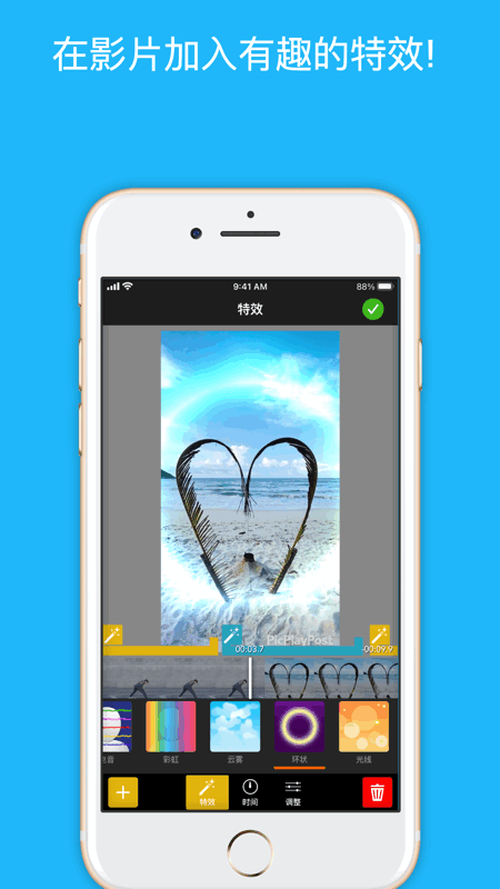 使用PicPlayPost可将影片及照片混合编辑至不同的相框设计,您可分享这不可思议的作品至社群网站给家人及朋友。用相框编辑你的生活视频,再导入喜欢的音乐,即可创造出独一无二的视频集锦,picplaypost,帮助你创造更多独一无二的作品!